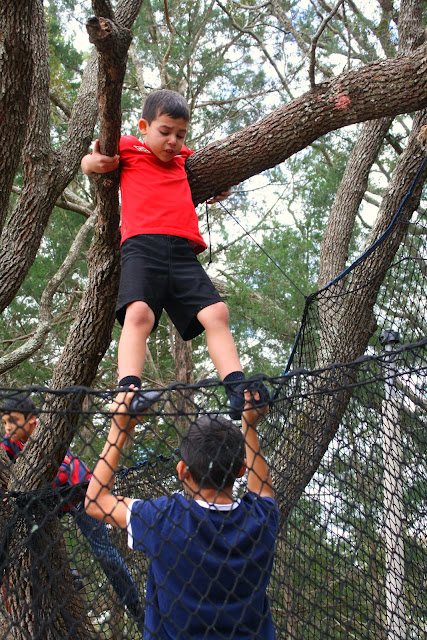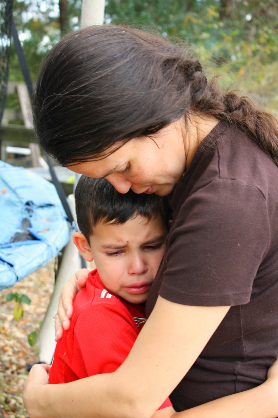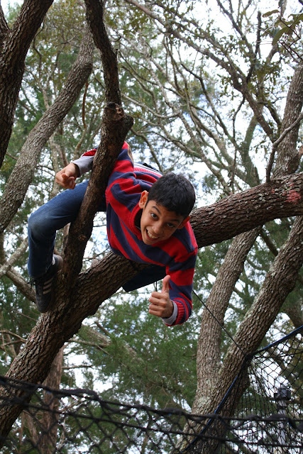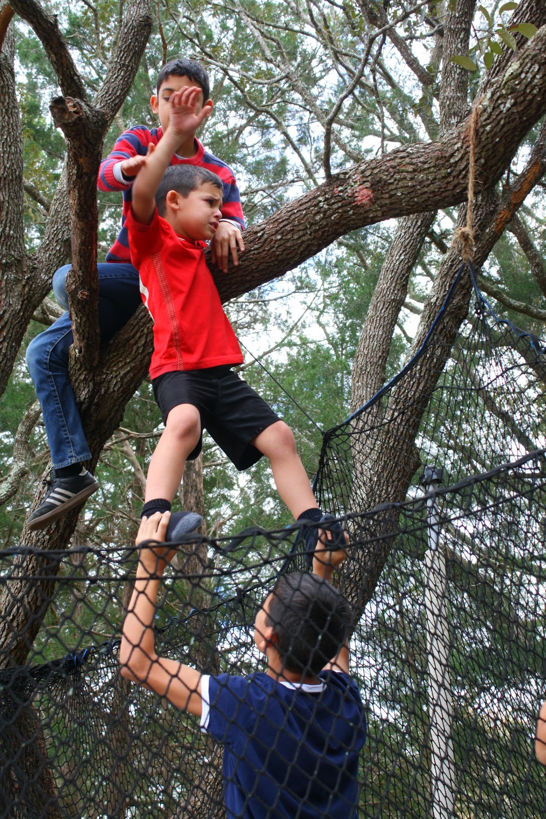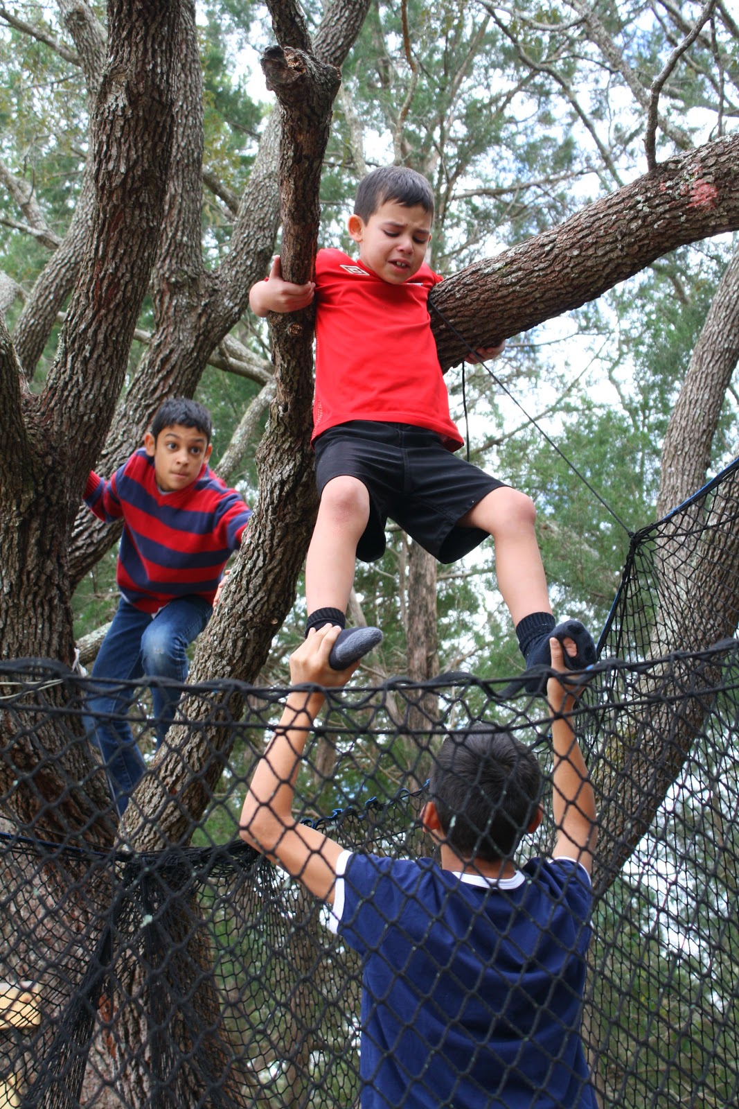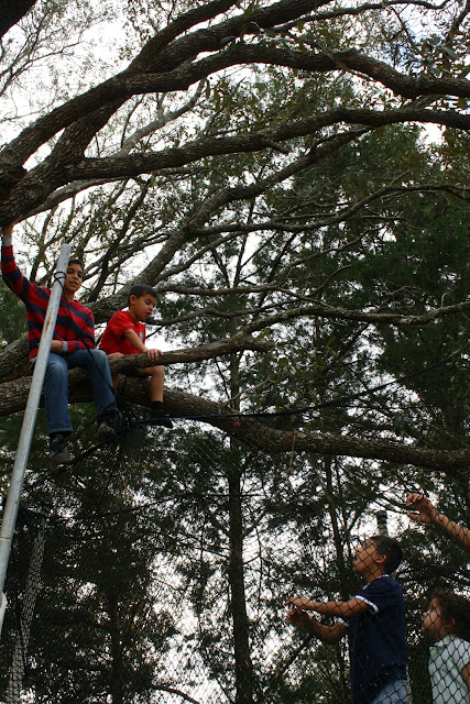 Case in point. I am cleaning the dust bunnies off the ceiling fans downstairs when my little Christopher and Olivia come rushing in excitedly screaming that someone is stuck in a tree. I run out being led by my two little ones to the oak tree that is over our trampoline. Sure enough, JP is stuck in the tree frozen with fear. He is sitting on the very branch that everyone jumps off of into the trampoline.