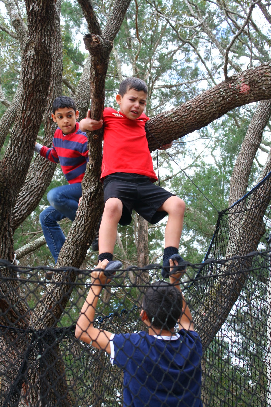 Everyone is on the trampoline trying to coax him out of the tree but he is not listening to anyone. Before you say or even think it, I am a terrible mother because firstly I am laughing at my sons misfortune knowing that he has jumped off that limb so many times and is not really in any dangers. Secondly, because I am taking pictures of the whole thing. Excuse the amount of pictures but they tell the story.