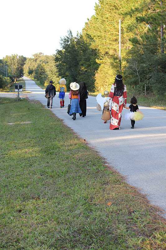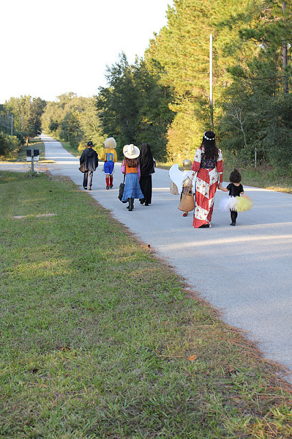 Lots of our friends all met up there and we all went out trick or treating together. It is nights like this that we all tend to remember. I loved halloween night when I was a child and I hope my kids can think back when they are grown and remember tonight. We did not get to carve our pumpkins so that will be done tomorrow and I promise to come back and share all my Saints Day costumes with you.