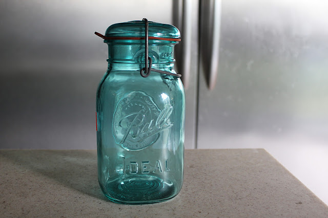 and this beauty would be my favorite but I already have a few and have never seen the little ball jar I said was my favorite so, yeah, that little jar is still my favorite but you can never have too many of these gorgeous vintage Mason Ball jars and this one has the original glass lid…swoon!