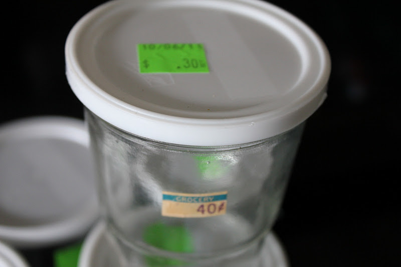 and I was shocked to find all in the same store, these vintage Ball freezer jam cups. The ones that Ball makes now are plastic. Getting the price stickers that have been on these forever off was not easy but they all came off. These little cups will be awesome for making yogurt, that way the kids just have to pull out a yogurt and eat it, no mess.