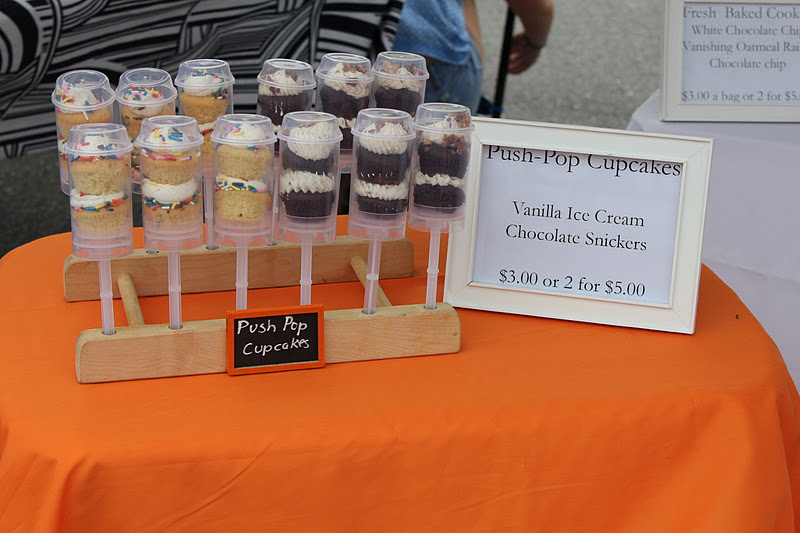 An hour after market opened so did God’s wind machine. A bad storm started coming in and though it never rained until after we left, the wind was so powerful that many booths almost lost their canopies and about every 10 minutes or so a big gust would get up under our tent and we would have to jump up and grab a pole. Many of the 70 vendors packed up and left and with them the traffic that had been coming in. We had no choice but to take our tent down and then just kept our tables up in the hopes we would sell our baked goodies. In the next two hours we sold out of our pumpkin spice doughnuts and most of the push pop cupcakes.