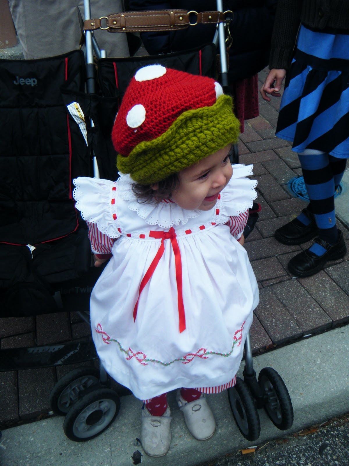 Here is my little Christmas dumpling with candy cane all over her face.