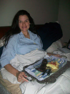 Olivia was taken downstairs and only brought up for nursing time, the kids checked in on me periodically to make sure I did not need anything. I rested, watched a great tear jerker movie with Alexandra, cuddled with Christopher and John Paul, received a pretty good massage from Poppa and just vegged out (lay like broccoli). For dinner Poppa made a really great churasco with his wonderful mashed potatoes topped with a creamy tomato and mozzarella sauce.