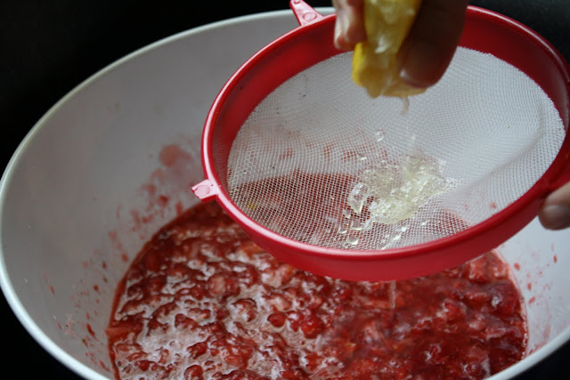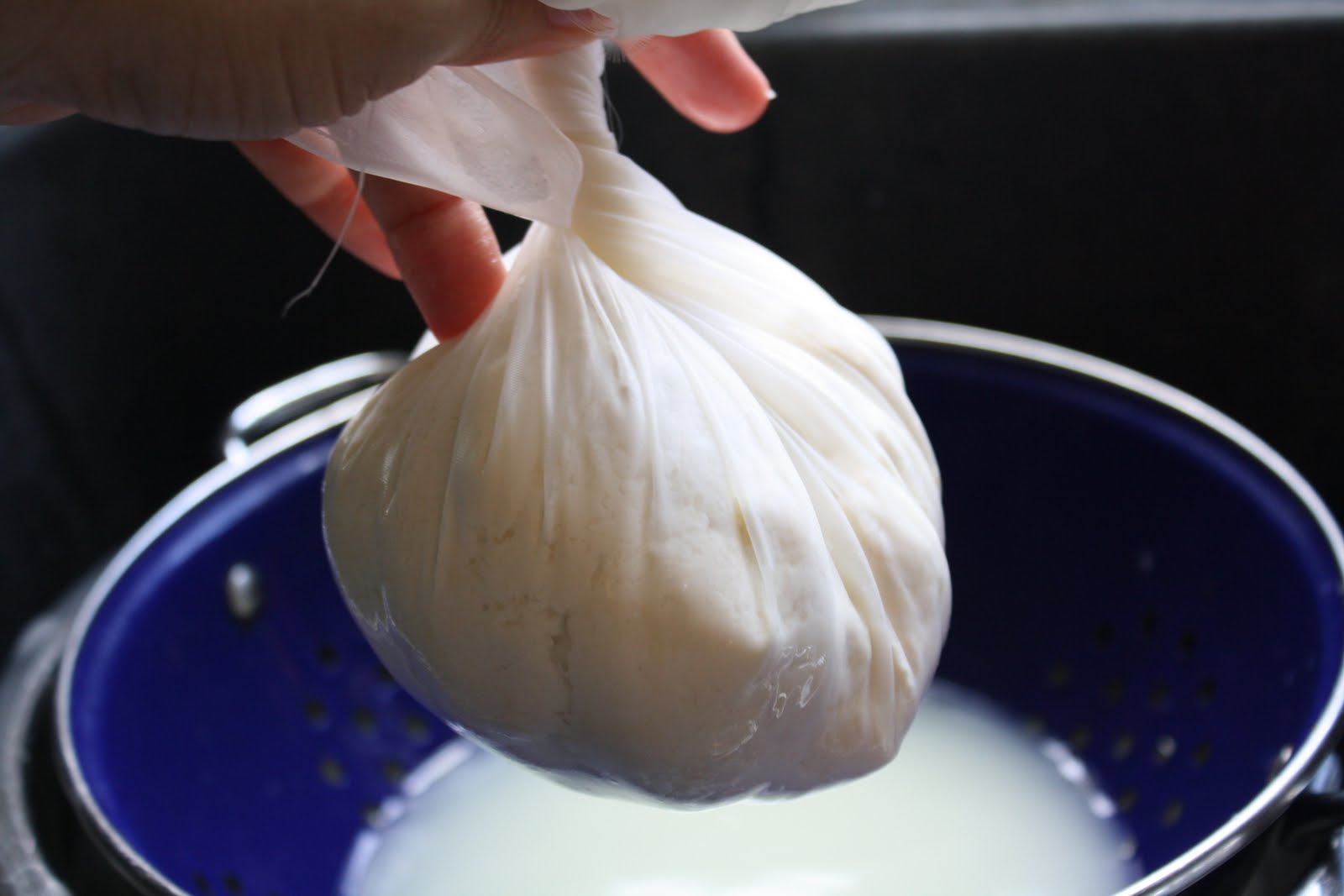 Put a strainer inside a bigger bowl to catch the whey and place your cloth in it.