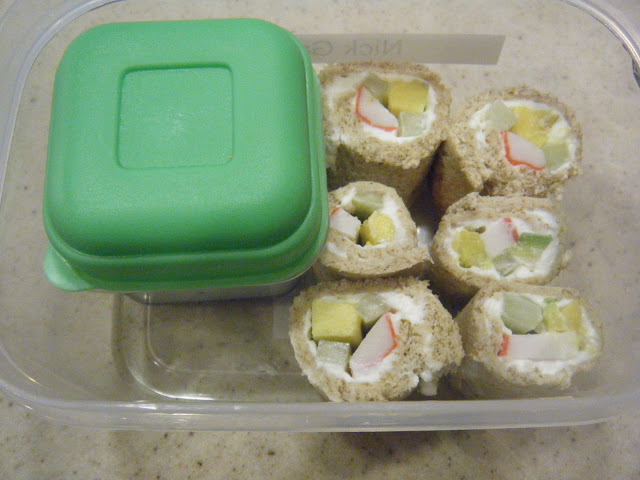 This fun lunch is super easy and quick and if your kids like California rolls like mine then they will love this.