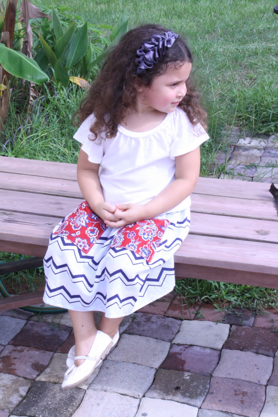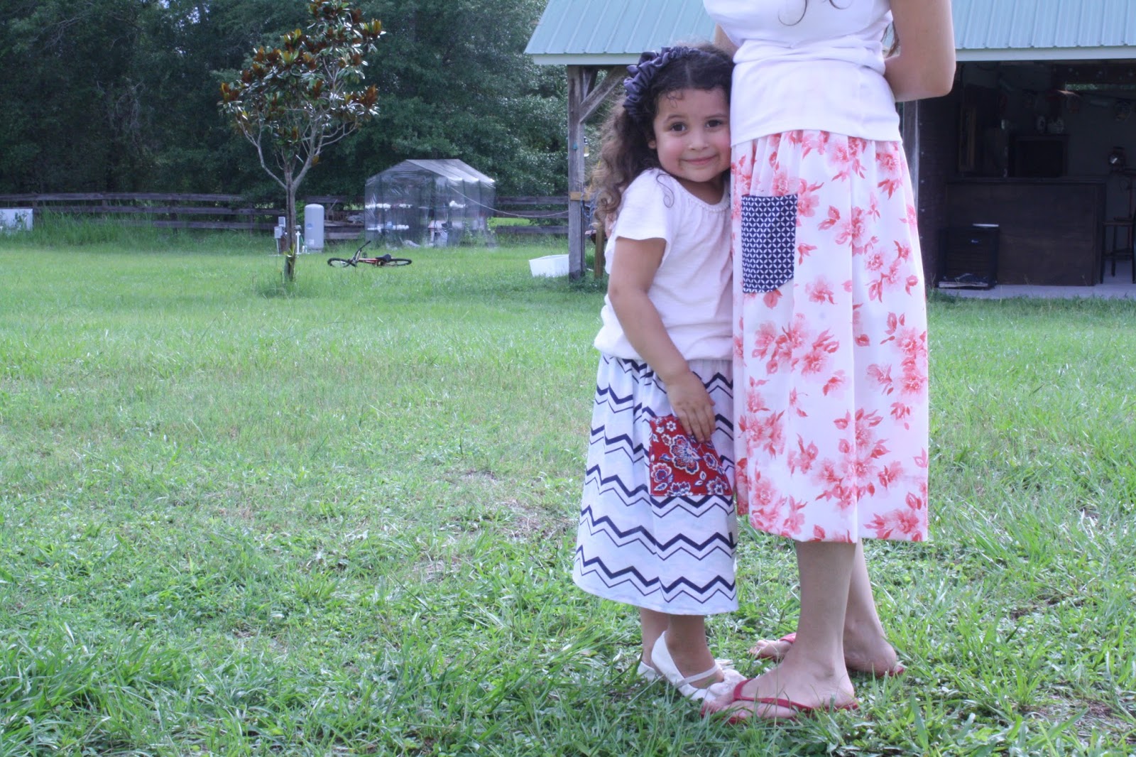 For Livie’s skirt I actually had bought some fabric to make a new 4th of July bunting since our old one has gone missing and never did make it so instead I used one of the fabrics to make her a little skirt just like mine. I may still make that bunting since I usually leave up all red, white and blue decorations throughout July.