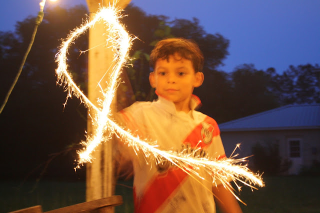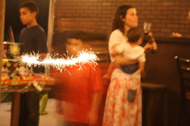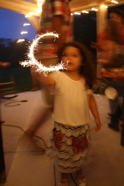 The weather did not really cooperate, it never actually does on July 4th. I can’ really remember one 4th of July where it did not rain and this year it not only rained but it poured. The day was pretty gray or wet or both. We took cover in the barn/bar and everyone made the best of it. At least it was nice and cool out. We spent hours talking, laughing, eating and setting off an arsenal of fireworks the likes of which we have never seen. One of Poppa’s friends is to thank for that and I am sure that there were no fireworks left to buy at the store after the amount that his friends brought to our party.