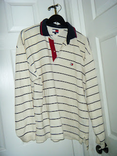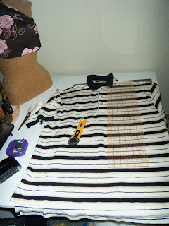 Poppa handed me these two polo shirts which he has never worn to donate. As soon as I saw them I felt a refashion project coming on.