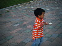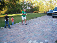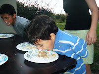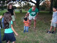 Next they moved onto the egg relay (remember the ducks eggs they were gathering). In teams of two the object was to make it back and forth to the finish line while balancing a duck egg on a spoon. Most of the eggs were dropped during this game and were tossed into the pond (lucky catfish) The winners were, Erica and Veronica. The funny award went to a little guy who did not drop his egg, because he was holding it onto the spoon, Christopher!!!! shame, shame : )