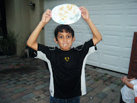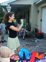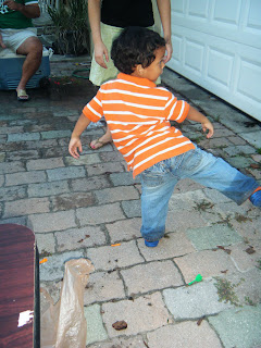 Next came, the water balloon toss, in teams of two, the balloon was tossed back and forth taking one step back each time the balloon was caught (some little people did not take very many steps back, Christopher!!! shame, shame : ) Some children whose balloon did not fall and pop chose to pop them on someone else’s heads.