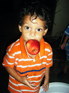 and here he is ‘pretending”, umm I mean showing us how he got an apple. Christopher!! shame, shame : ) Does anyone know of a cheaters anonymous?