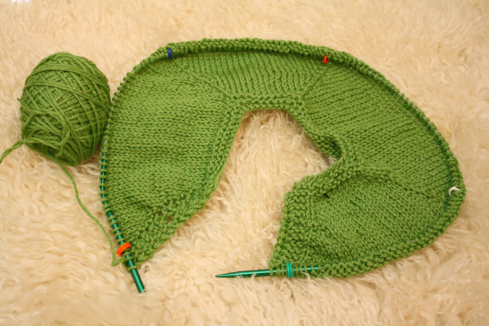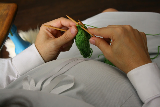 I do feel so much better laying in bed or in my rocking chair so that is where you will find me for the next three or four weeks (hopefully) and until then I am sewing, knitting and dreaming. I am working on this little sweater for the baby called Puerperium, which means the first 40 days. It is another one of the Cascade yarns I got at Purl Soho during my trip to NYC in November. I love this yarn but I am less than happy with my stitches and I am a little over on my stitch count at this point so I may just rip it and start over.