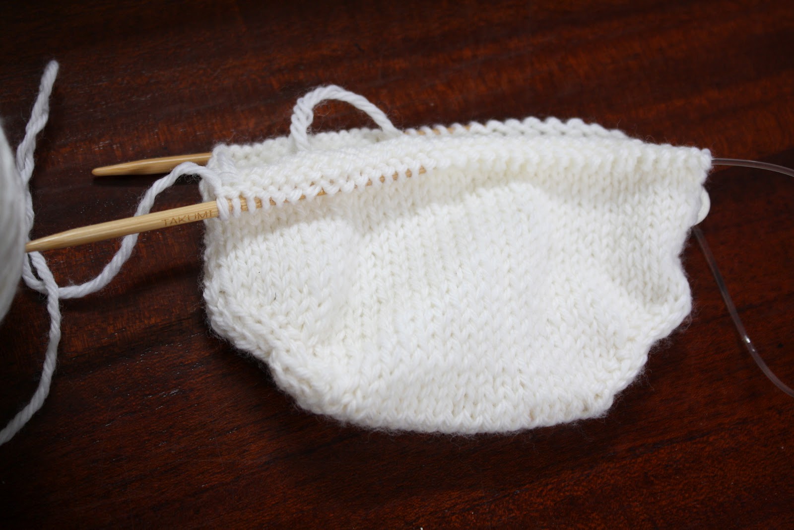 I am happy to say that I can now include the Turkish cast on to my repertoire of knitting stitches though I am far from mastering it. I think if the cable between my needles was a bit longer it would be a bit easier to keep the front half stitches from sliding over the cable and joining the back half. I may still transfer my stitches over to dpn’s at this point but at least I know how to do it now. I always wondered how socks that are worked from the toe down did not have a seam and now… I know!! Happy, happy and I should say that I wouldn’t be brave enough to keep learning new stitches without the inspiration I get from so many of you.