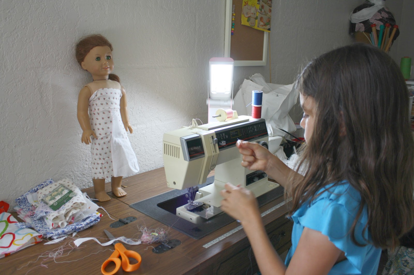 I gave her machine to my Ronnie. Well, I actually am loaning it her as long as she wants to use it 🙂 and that machine has already mesmerized her her so much that the secret fort Ronnie usually disappears to next door has not seen much of her for she is busy, cutting, planning and sewing.