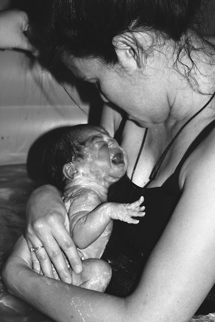 With one long push I felt the head of my little one, I could not believe I was really almost there and before I knew it I was being told to pull my baby out of the water. I couldn’t do it and asked Poppa to grab the baby. This is the moment I had dreamt of all these months, the moment when I would draw my baby up out of the water into this world and here I was not able to move an inch.