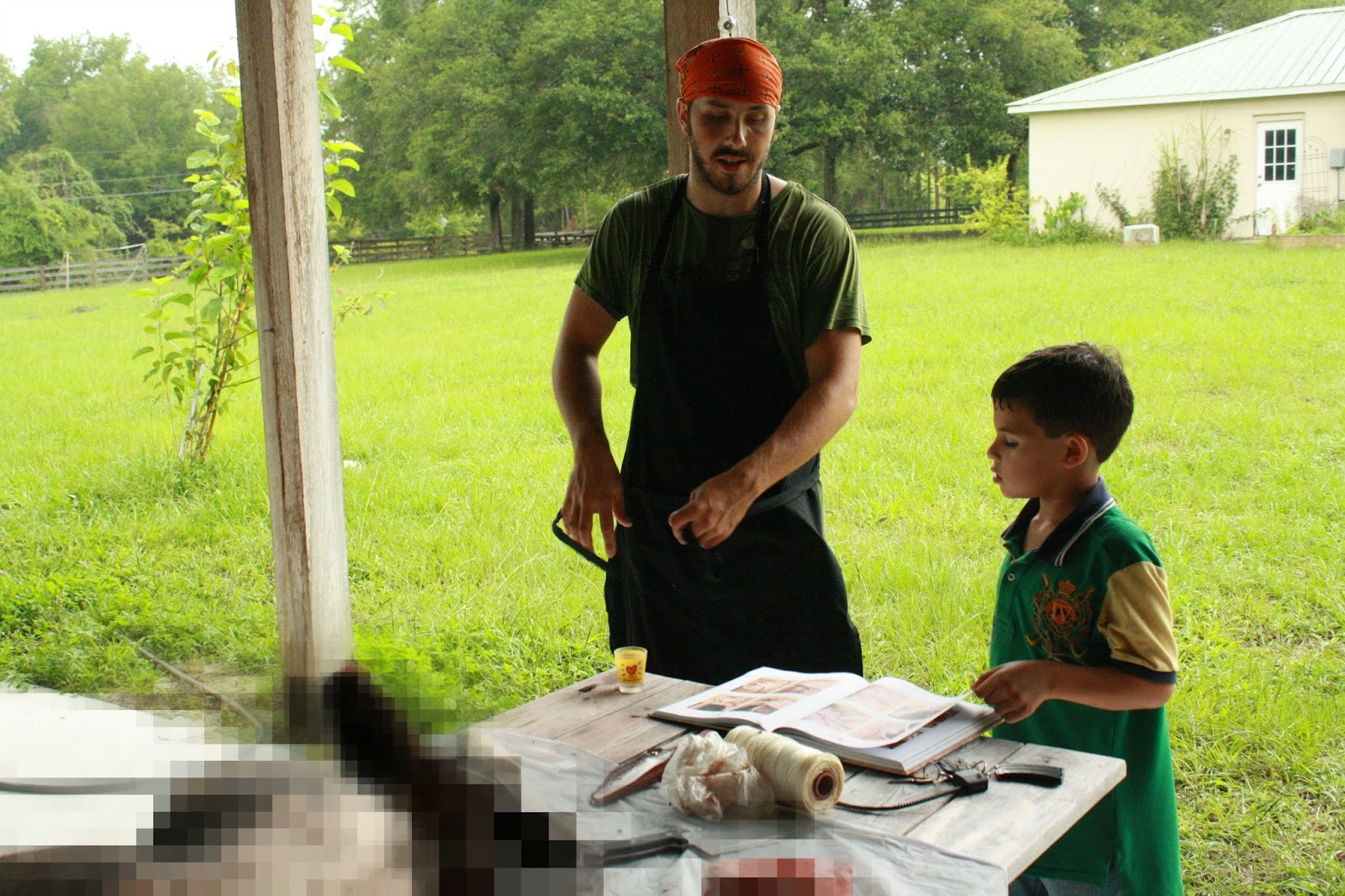Our friends Nate and Charlei are smart. They are way smarter than I was at their age and I am lucky to know them. Fun times are to be had when we are all together and my children think they are cool. Though they are in the middle of their own life changing project they took the time to come and share their knowledge of butchering with us. Of course, fate would have it that the day we picked turned out to be quite a rainy day but even the rain could not hamper our resolve to get this job done.