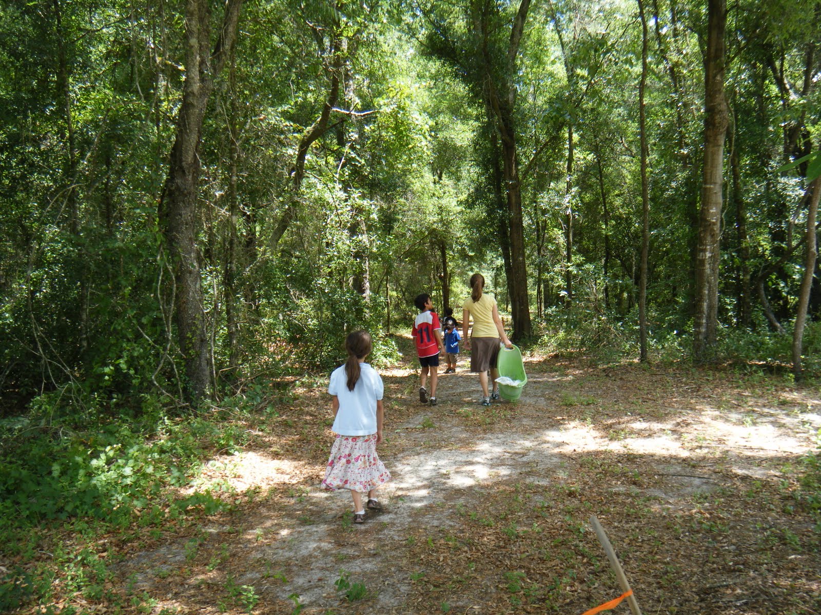 We have access to this amazing partially wild land which consists of open fields and forrests. It is about 20 acres and today we went for a visit. What where we after you may ask? Wild juicy Florida Blackberries. Each kid with gloves on and bag in hand jumped out of the van and went to it. Everywhere the eye can see there are blackberries growing among the throny brambles. The kids know how to be careful and not get scratched and which ones to pick.