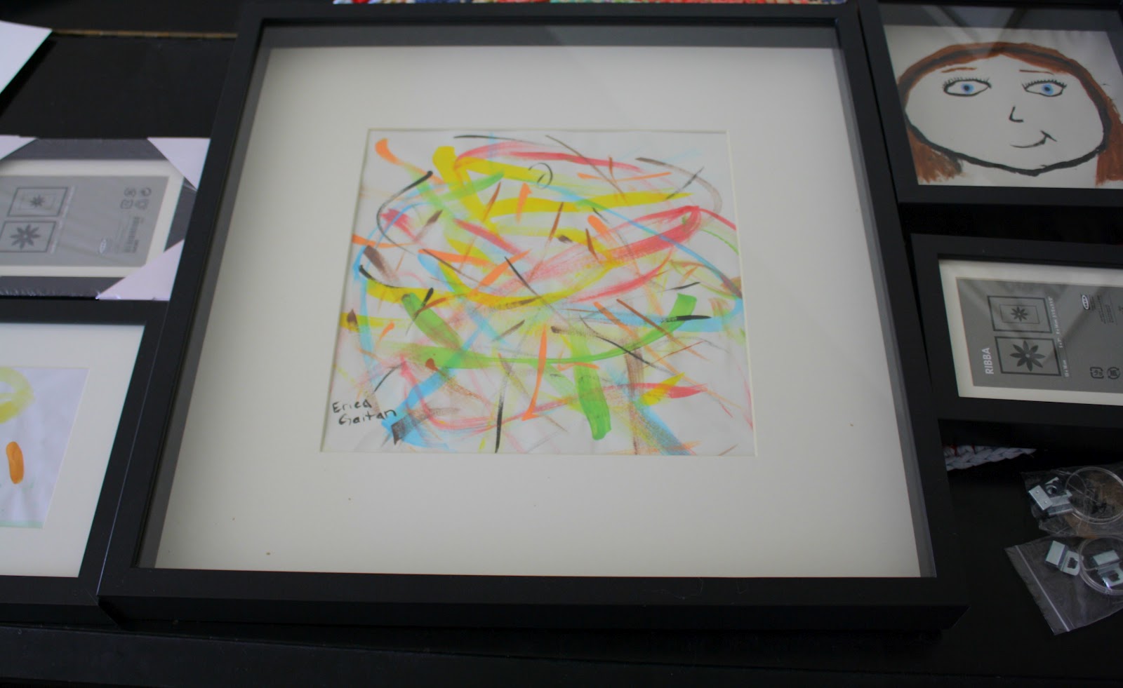 started to go through the kids artwork and frame my favorite pieces for the upstairs hallway wall