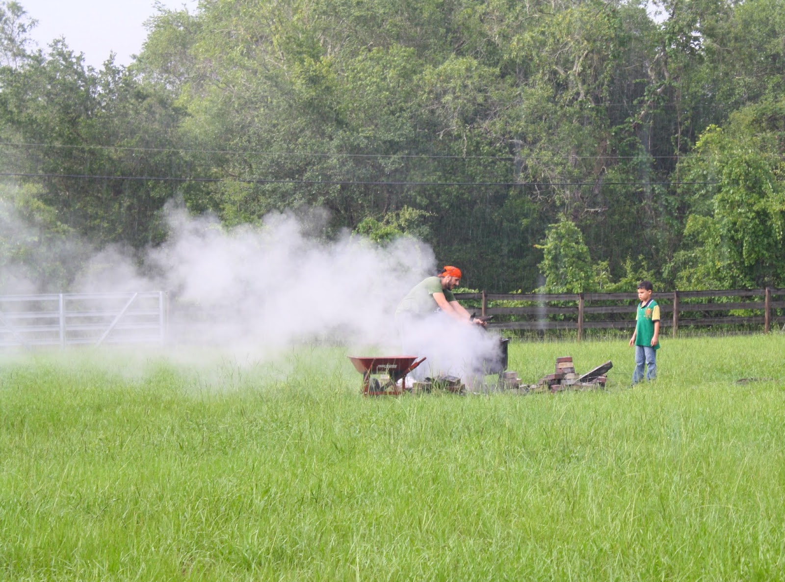 Our friends Nate and Charlei are smart. They are way smarter than I was at their age and I am lucky to know them. Fun times are to be had when we are all together and my children think they are cool. Though they are in the middle of their own life changing project they took the time to come and share their knowledge of butchering with us. Of course, fate would have it that the day we picked turned out to be quite a rainy day but even the rain could not hamper our resolve to get this job done.