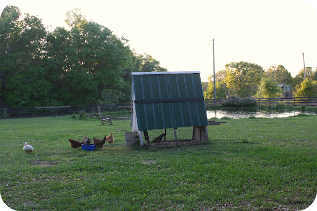 The feathered girls close to bed time, they come back to the coop right about an hour before sunset, from wherever their adventures took them during the day. The boss (rooster) starts sounding the call and everyone nicely goes inside the coop. I love the sound of roosters and this one is very good with taking care of his girls but I don’t trust him so I always have my walking stick next to me. I don’t know why, he just has that kind of face.