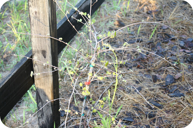The last of the grape vines, which I was sure was dead has come back to life. I planted about 7 grapevines last year and put the pruning off till this year. For some reason this really scares me, but they have to be trained to the trellis so I am busy reading up on it and watching youtubes.