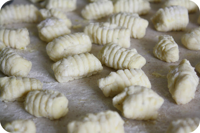 It was only a few years ago that I ran across an easy version with ricotta instead of potatoes in a doctors office magazine. I jotted down the recipe from the magazine and threw it in my binder. It was probably a whole year later that I was organizing all my recipes into a binder that I found that slip of paper and started playing around with it. After a few attempts, I made a gnocchi that was BETTER than the restaurant and so easy. In this recipe I add lemon zest but you could leave it out if you like. I also love to add fresh minced tarragon instead. The other thing you can do is pan fry them in butter instead of boiling and they are yummy but Poppa likes them like this.