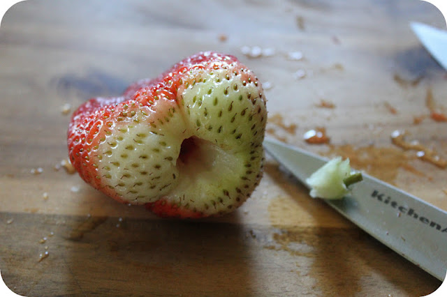 Something I have wanted to share. I have noticed that when some people are cutting their berries for jam, they just slice off the top part completely.