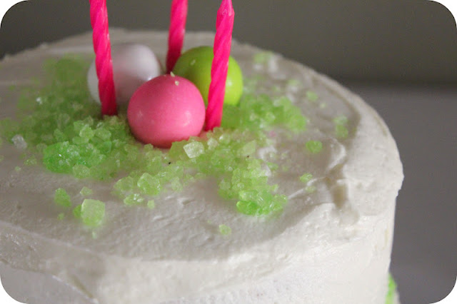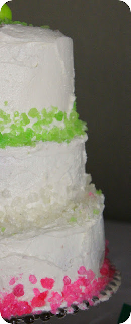 The cake is admittedly not my best work but it was still too warm to ice,which I had to do anyway because guest were arriving. I wanted the icing to look rustic as a backdrop to the rock candy but it came out a little too rustic (code word for sloppy) and by the time I got a picture, a few fingers had been dipped into the cake.