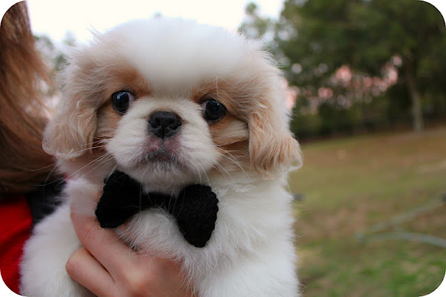 On the knitting front, we are getting ready for New Years and to add our new puppy to the fun I knitted him a bowtie! I had this one ball of black Alpaca yarn which I have not been able to use because it is not enough to really make much so it was perfect for this little project and I could probably make a dozen more since it takes so little yarn.