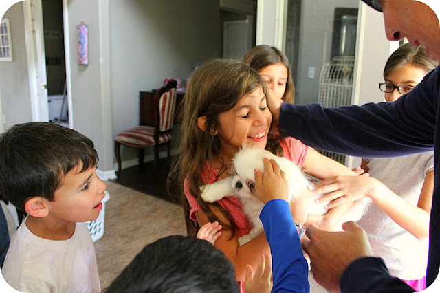 Poppa picked him up the day before Christmas Eve and we sprung the surprise on her though it seems more like a surprise for everyone, me included.  We had everyone stand in the front door and close their eyes. The look on her face was priceless.  I was so happy that we could make it happen for her.