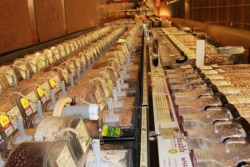 my favorite aisle at the store. I spend a whole lot of time here since the bulk of what I buy is in the bulk bins. I love buying exactly how much I need of nuts, grains or wheat. It is also a lot less expensive.