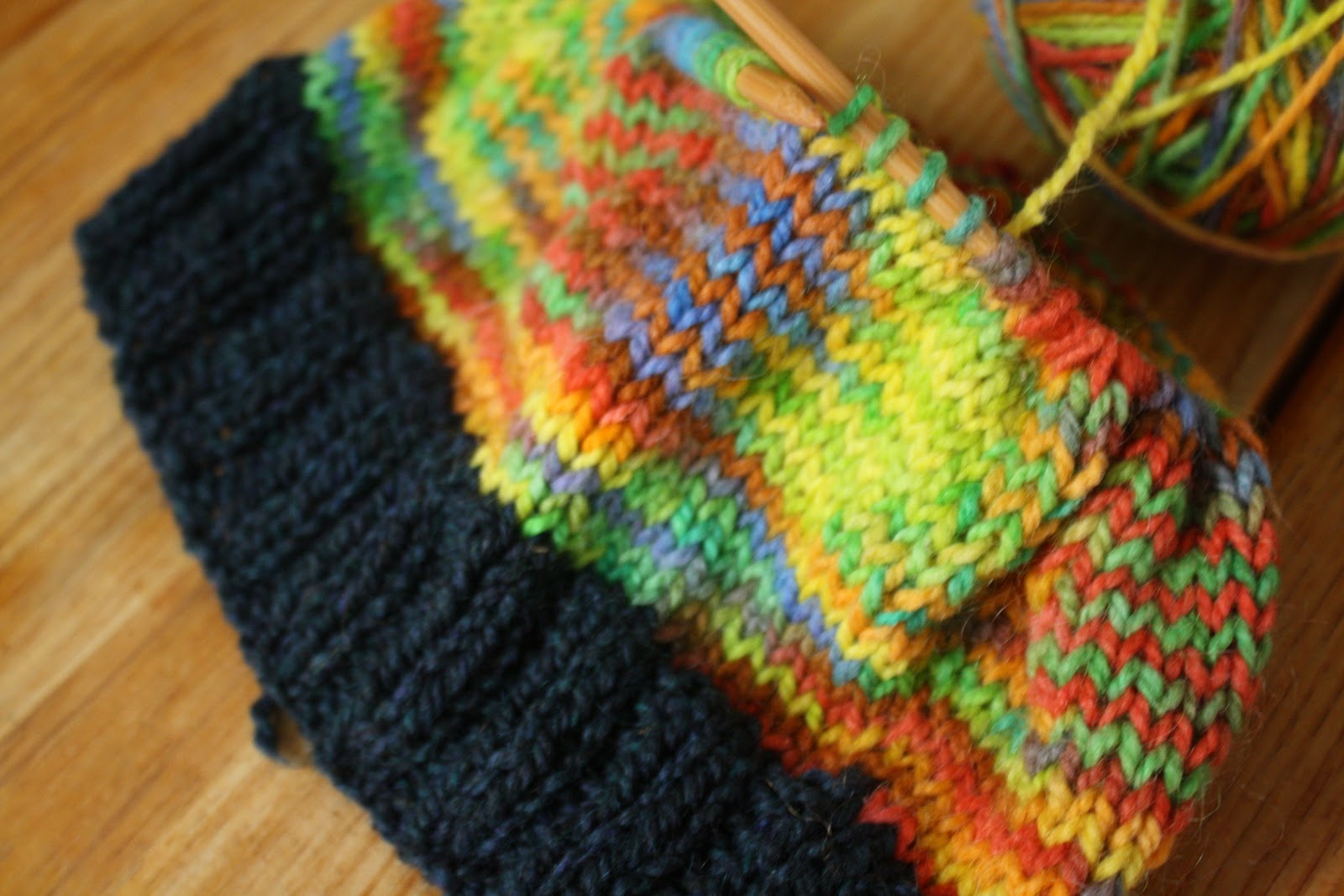 I’ve never met a crafter without a stash of some kind. This year my goal is to use up all the craft supplies I have spent hand painted yarn from my last post. In case you didn’t read it, it is Peace Fleece from my stash and I am working it into a new pair of longies for Matthew. I love Peace Fleece for longies, they wear like iron and even though they feel rough and scratchy initially, after a wash it starts to get very soft and cozy and it doesn’t pill like some other wools.