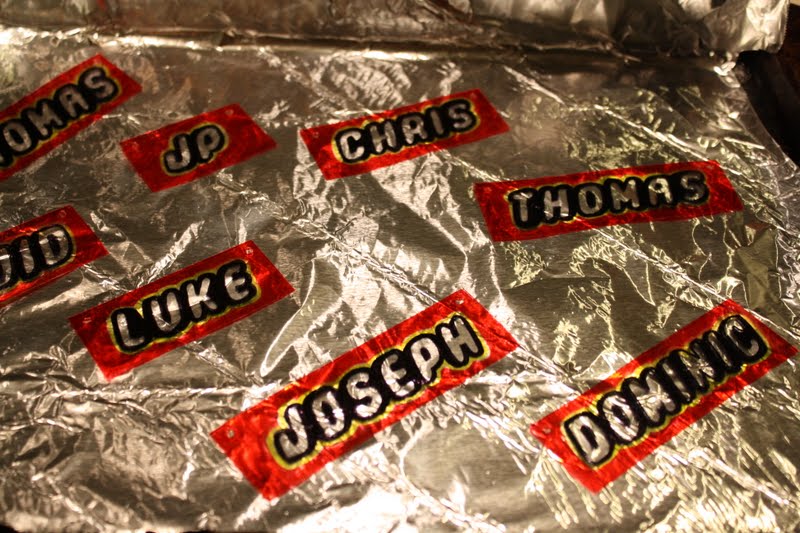 With a glue gun, glue the name tags to the straw. done. This is my original idea,  If you like it enough to try it on your blog please link back to this post ; )