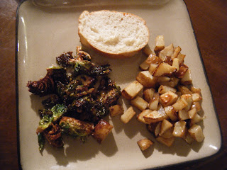 I know what you are thinking, brussel sprouts? but OMGoodness, I promise, if you try this you will love it.  Not only will you love it but your friends will love it and will call you months later to tell you that they love it. This is not the best picture but really no picture will be good enough to describe the awesome goodness that is this dish.