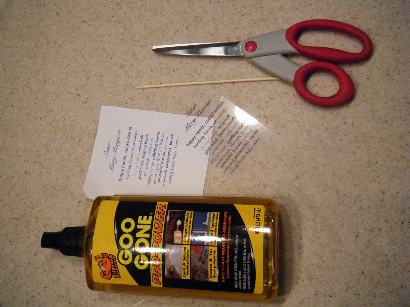 Make sure you have your message copied by a laser printer.  I took mine to the copy store and I got 8 bottles out of 2 transparencies.  Super inexpensive.  If you use an ink jet printer, the words will bleed inside the bottle.