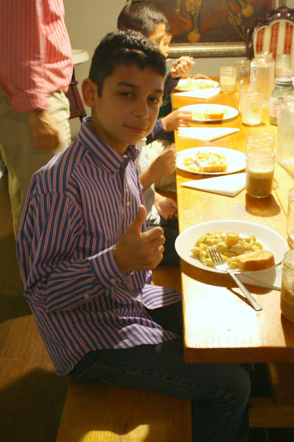 We dressed up too, me as the hostess and Poppa, well he was already dressed from work in business attire and we decided that since he is the Executive chef at our restaurant, that he could stay in his work duds.