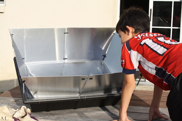 : : Enjoying our solar cooker and the added science experiment of checking the temperature all through the day