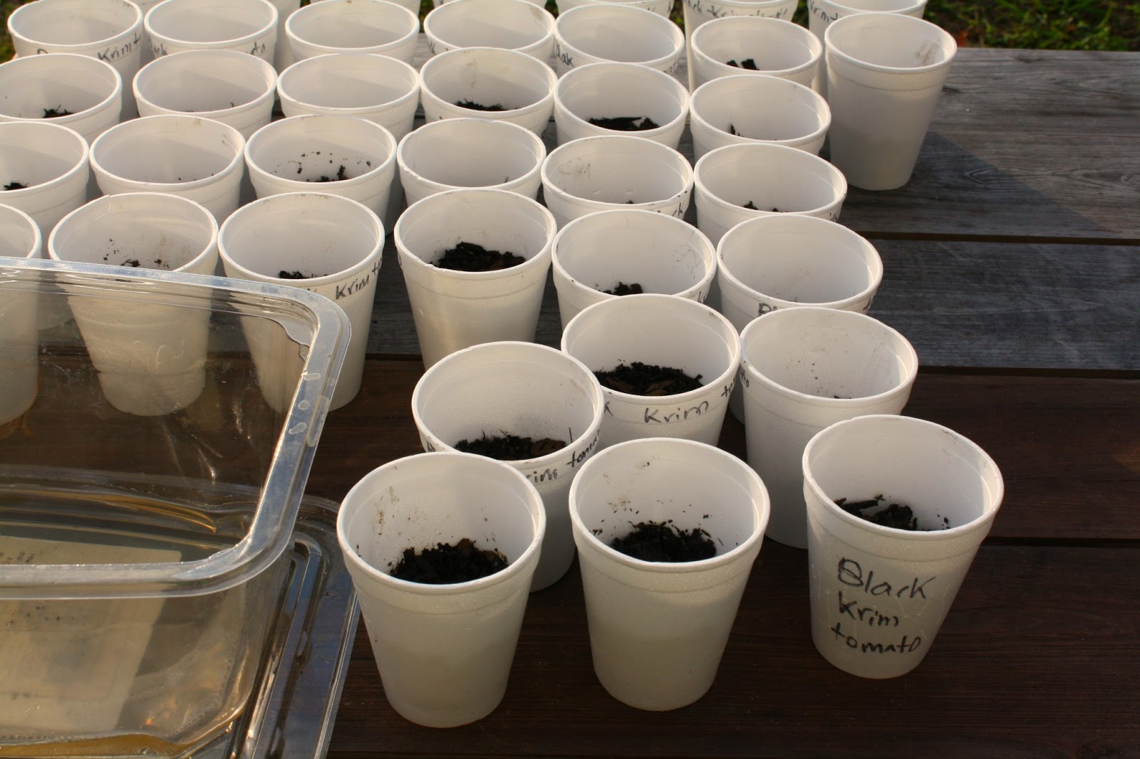 : : Starting many different types of seedlings in recycled cups for the spring garden