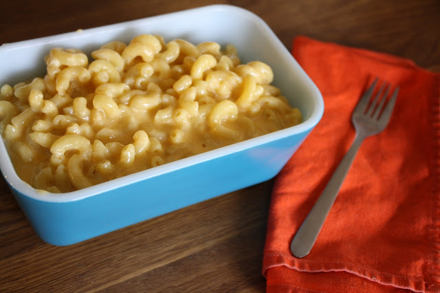 : : Eating quite a bit of homemade macaroni and cheese because it is a fast filling meal in our very busy days