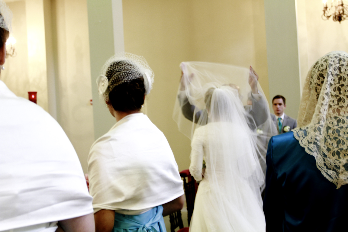 Yes, we are required to cover our heads whenever we are inside the church : ) Thank you so very much for your kind words!! I loved her gown too. She found a designer which keeps their old patterns so they can make the top anyway you like by mixing and matching to make a custom gown. She wanted to be modest but stylish too and they did not disapoint.