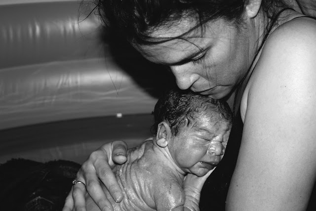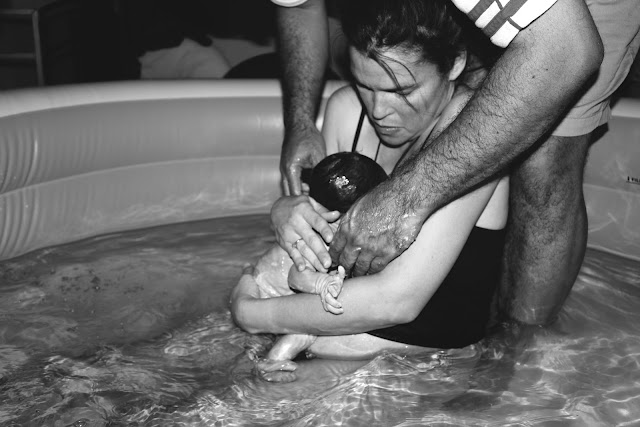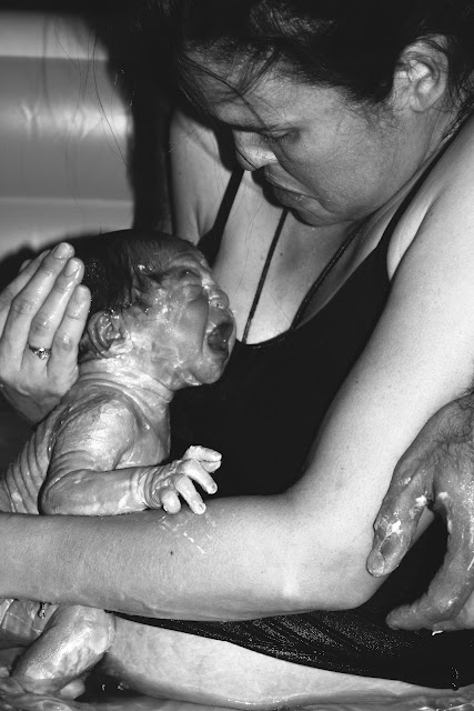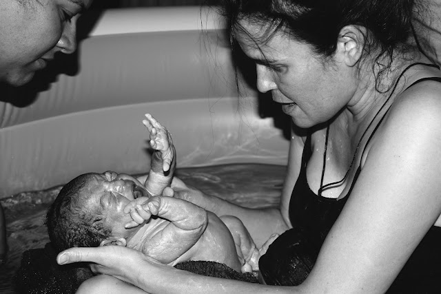 With one long push I felt the head of my little one, I could not believe I was really almost there and before I knew it I was being told to pull my baby out of the water.  I couldn’t do it and asked Poppa to grab the baby.  This is the moment I had dreamt of all these months, the moment when I would draw my baby up out of the water into this world and here I was not able to move an inch.
