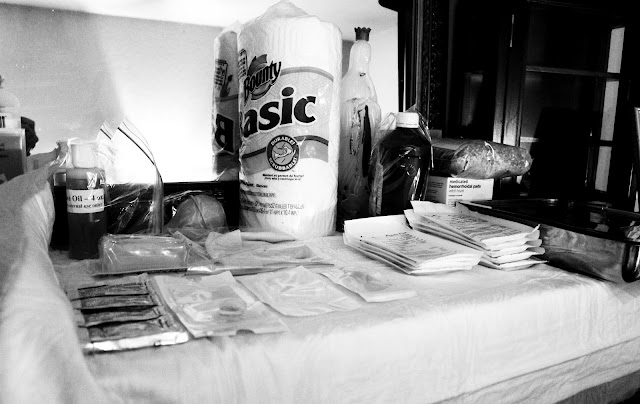 On Monday the 10th I decided that I only had two days left before they were leaving and I did not want to have the baby on 9/11.  My midwife was coming for a visit and she had already told me the week before that I was at 4 centimeters so if I was further along I would ask her to strip my membranes. I spent the day finishing up last minute baby projects and made a nice big batch of labor aid.  An hour before my birthing team showed up I even casted on a new baby project to keep my hands busy (it is finished and will share it tomorrow).  I was very worried that my oldest daughter Alex would not be around to take pictures so I was trying to time it while she was not at work.