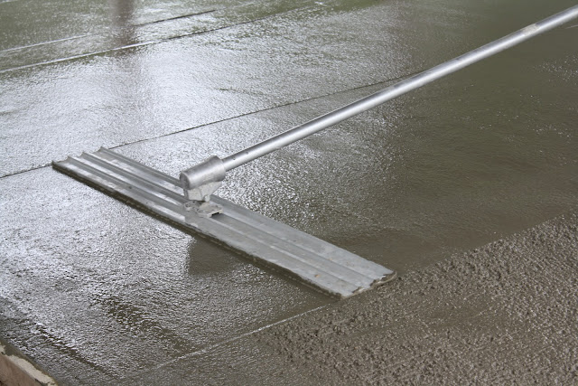 : :  we watched for an hour while the concrete truck drove up to the barn and then just like decorating a cake, they roughly spread the concrete out evenly and then beautifully smoothed it out perfectly.  I have been waiting to have a floor in the barn for the past 5 years…I guess there is nothing like a wedding reception at home to get all those projects done