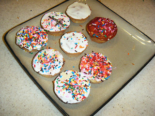 Once the pies were totalled and the mess cleaned up (Poppa was a master of ceremony you know, he is a total neat freak : ), it was on to the ring toss. Each contestant was given 8 rings to toss with prizes given for each ring landed. Some little contestants got so close (even though at some point they were being pulled by the shirt to keep them from getting right up to the target) that they could practically place the ring on the pole (Christopher!!!! shame, shame)